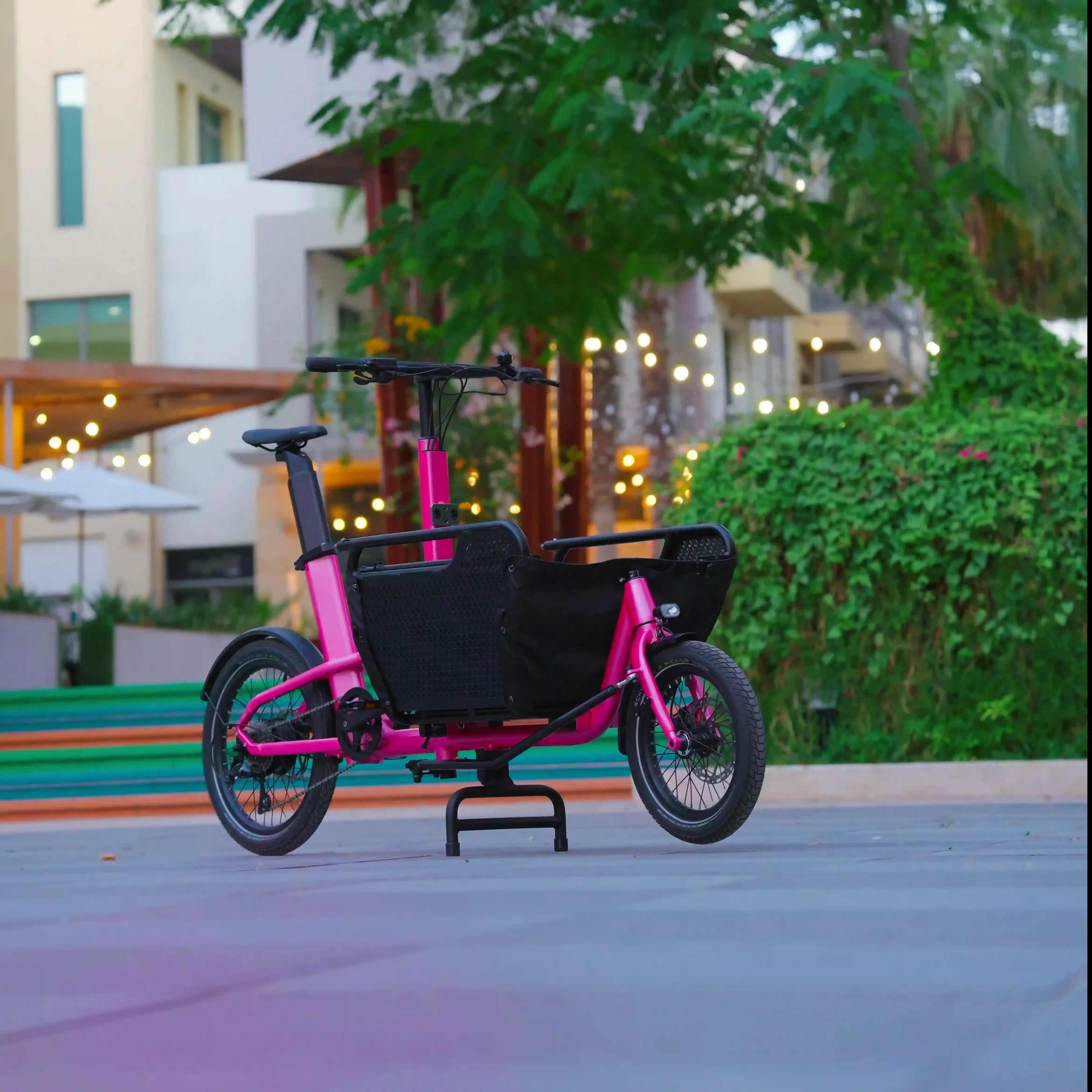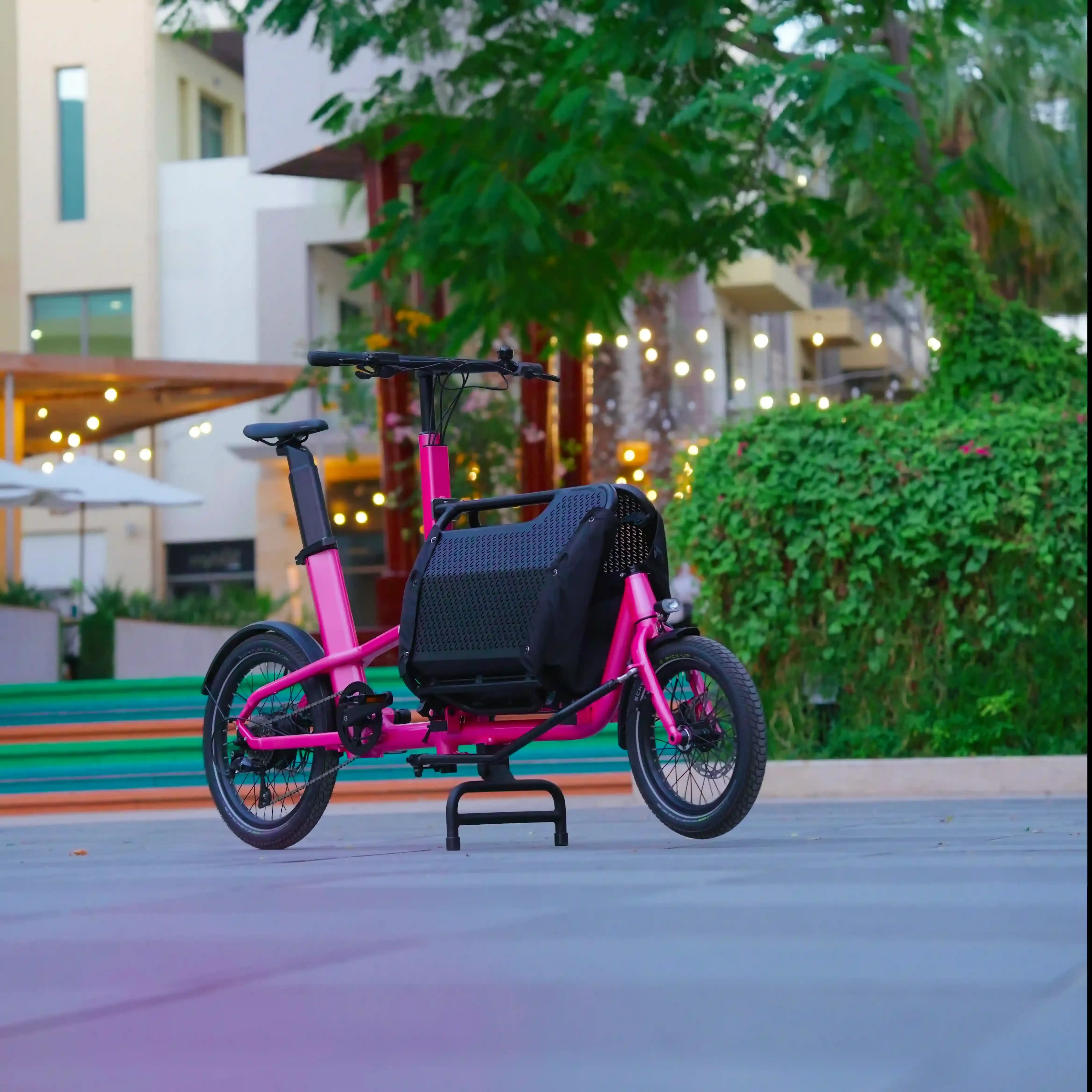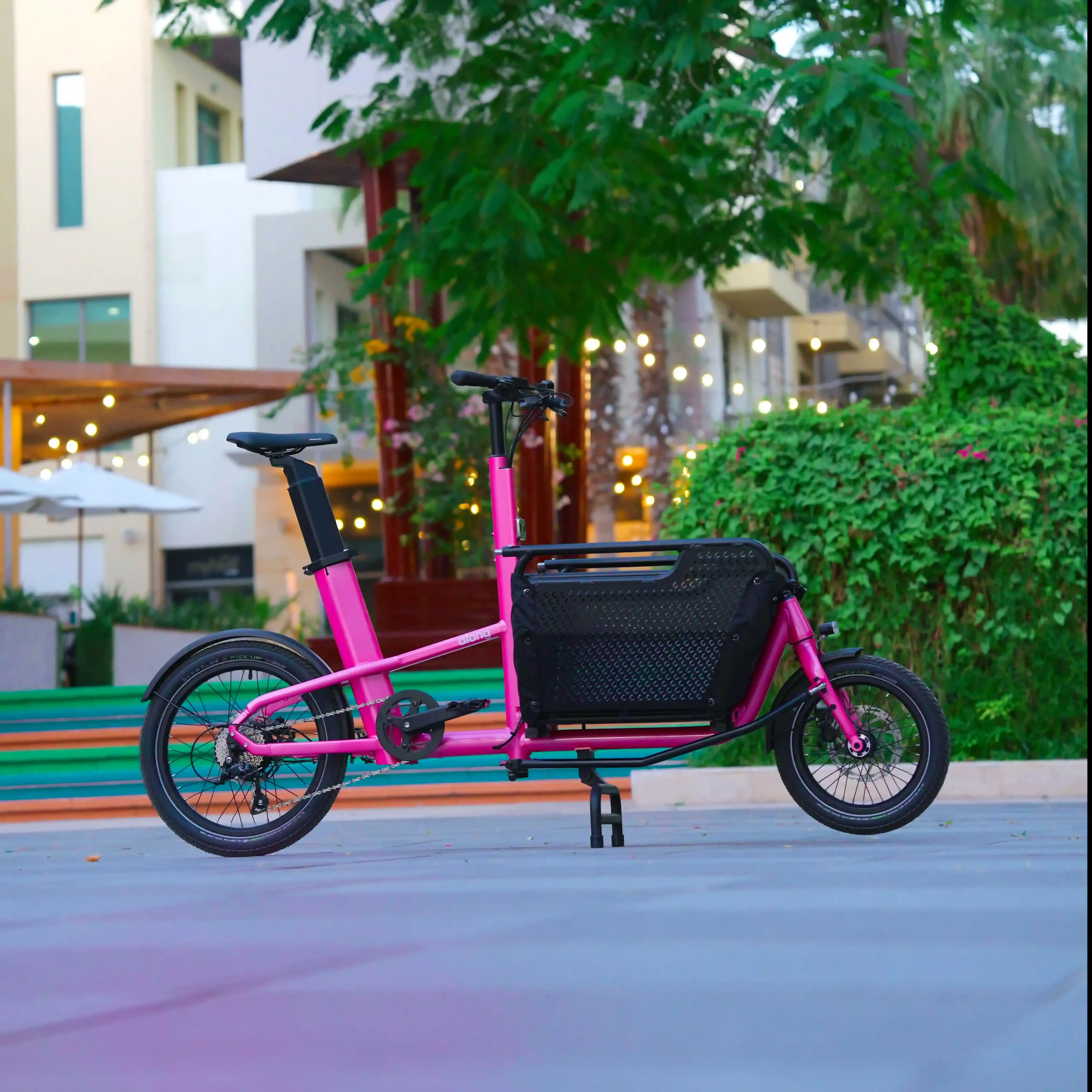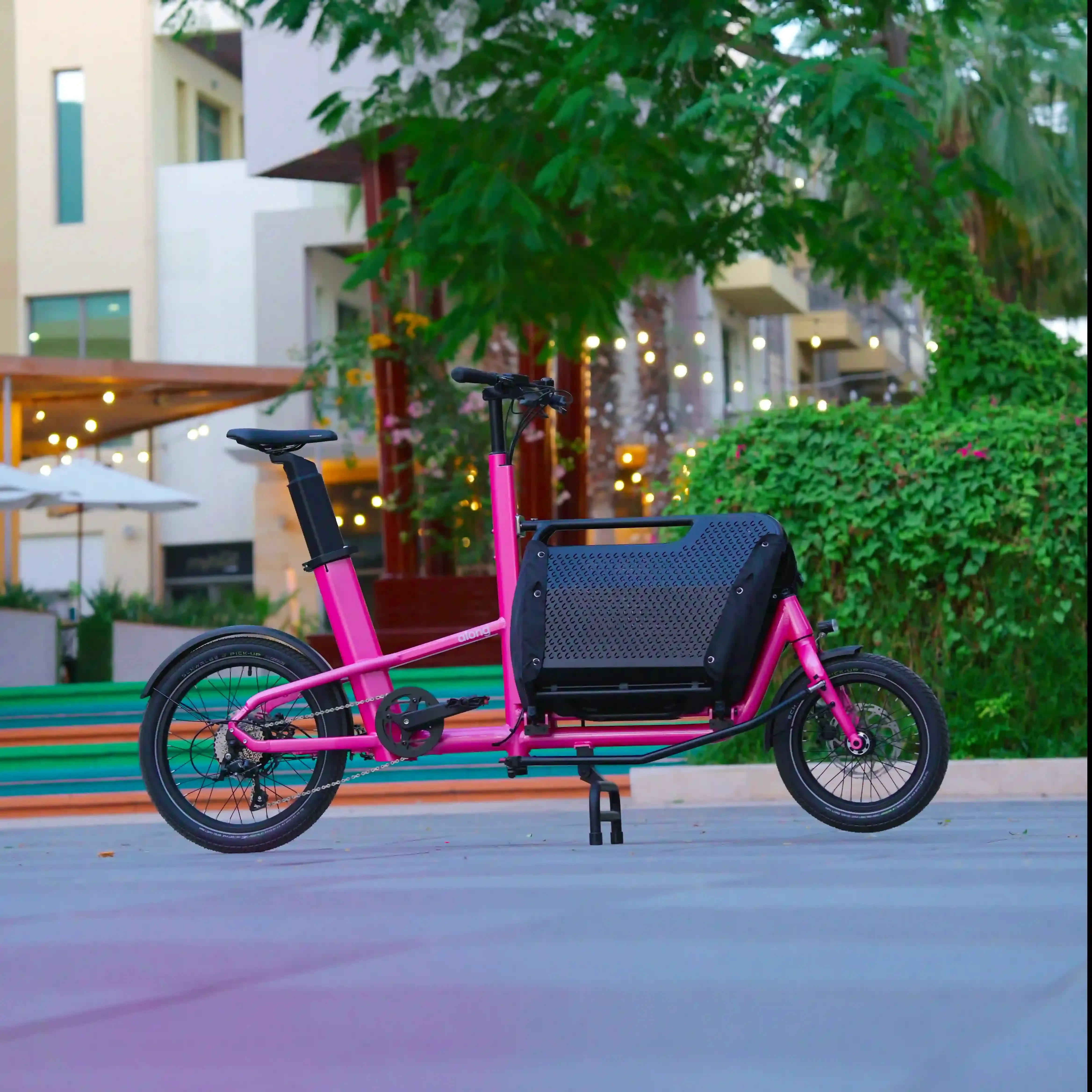 The Click-E is a cargo bike designed for families who want an easy, smart way to move together with the added comfort of electric pedal assist. Built with an aerospace-grade aluminum alloy frame, a rear hub motor, and an in-frame Li-Ion battery for balanced weight distribution, the Click-E stays strong, stable, and impressively light. With a net weight of just 35 kg and a short wheelbase, it’s easy to handle and fun to ride through communities and narrow streets across Dubai and the UAE.