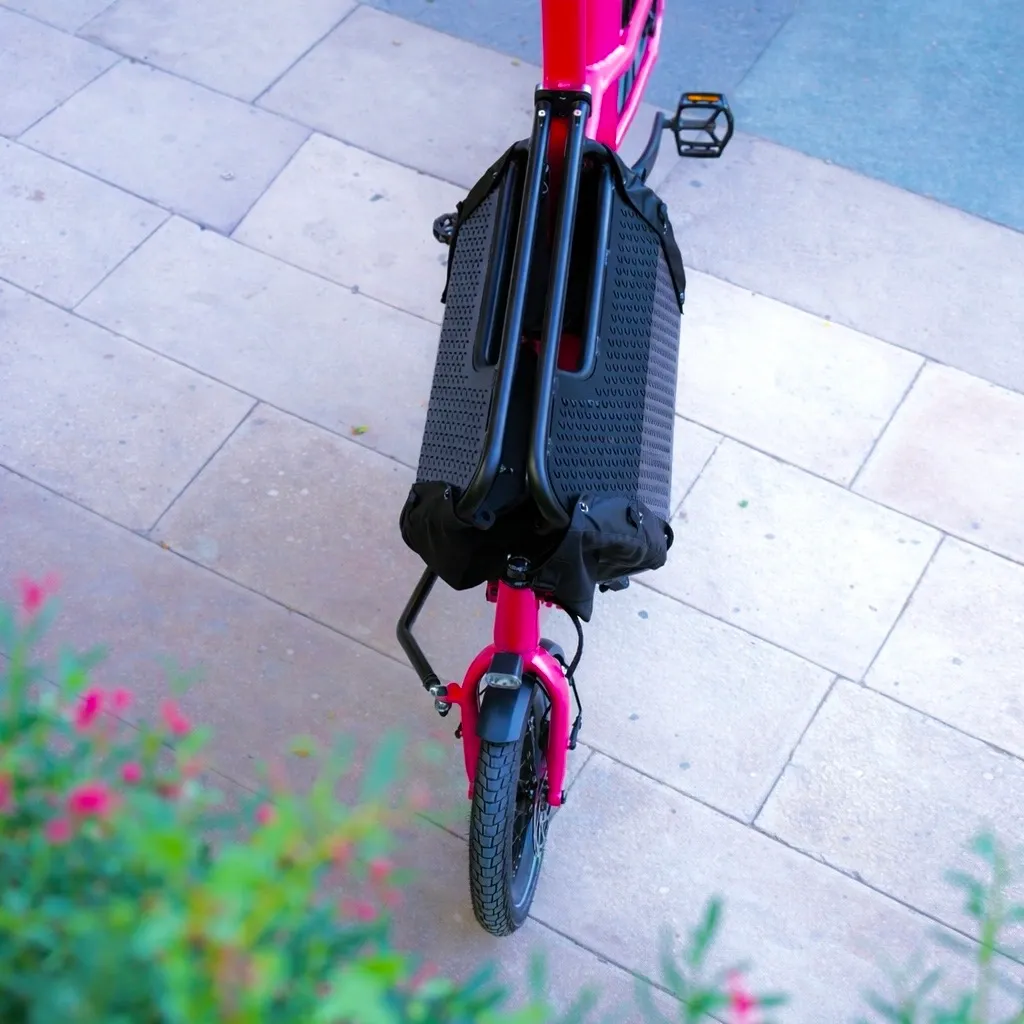 The front basket folds flat when not needed, making the Click-E compact and portable. You can lift it onto a car rack or place it on your truck, bringing it along on beach days, road trips, or weekend outings.